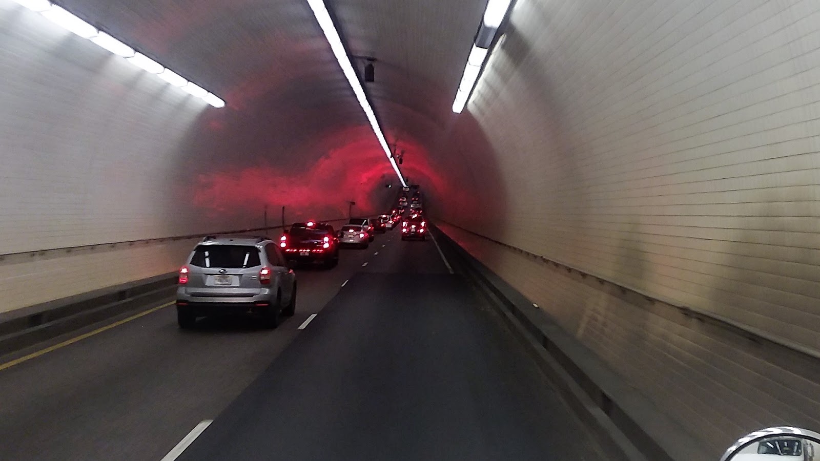 Through the westbound tunnel under Mobile Bay on Interstate 10,