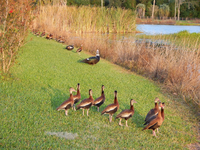 Lake Desoto was the closest, so after dinner we enjoyed a walk around it - very popular with joggers and walkers in the cool of the evening. Some ducks have homes on the banks.